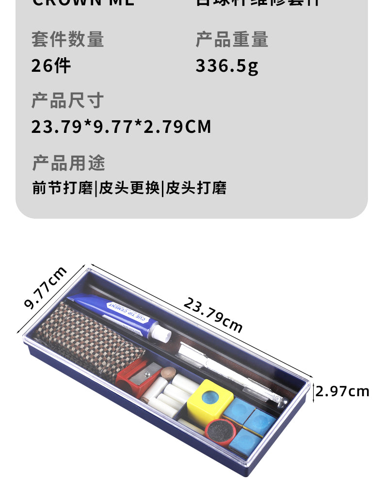 Suitable for cue shaft sanding, tip replacement, tip shaping and various maintenance needs. Essential tool for billiard enthusiasts and professional players.