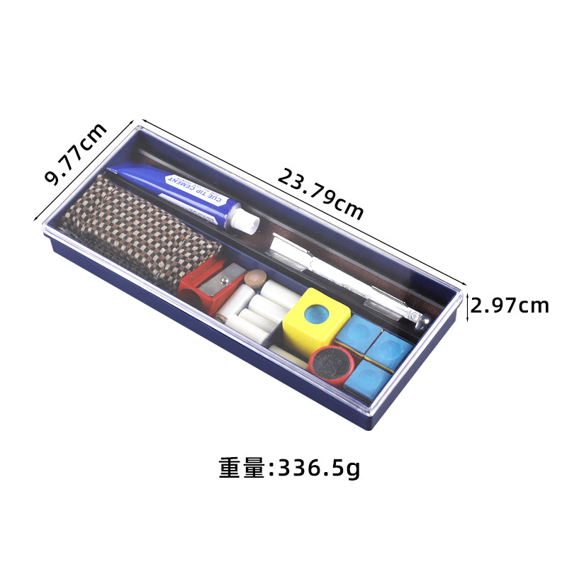 Transparent storage case with compartments keeps all tools organized. Convenient to carry and provides professional care for your cue anytime, anywhere.